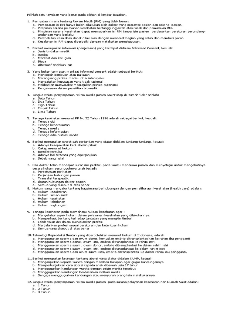 Soal Ukom Rekam Medis Dan Jawabannya